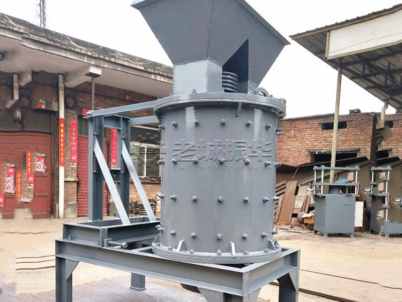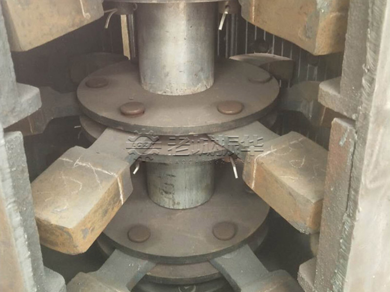 立式破碎機(jī)主要工作原理是:利用電機(jī)帶動(dòng)皮帶輪,隨著皮帶輪轉(zhuǎn)動(dòng)的另一頭,帶動(dòng)破碎機(jī)內(nèi)部轉(zhuǎn)動(dòng)主軸,主軸轉(zhuǎn)動(dòng)的同時(shí)帶動(dòng)附著主軸上的每層轉(zhuǎn)盤(pán),轉(zhuǎn)盤(pán)再帶動(dòng)錘頭形成的高速旋轉(zhuǎn),從而將進(jìn)料口進(jìn)去的原材料利用高速旋轉(zhuǎn)、以及錘頭利用石打石的原理,將大型的石塊、鵝卵石、煤塊、炭塊等原材料進(jìn)行粉碎;